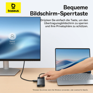 The Baseus Adapter Hub allows full control over screen modes. With it, you can easily work or have fun in duplicate or extend screen mode. And a button enables quick screen cast mode deactivation when you don’t want to share information. Complete flexibility to tailor it to your needs.