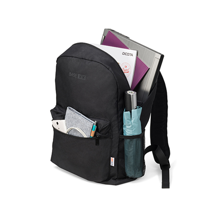 A fastening strap also ensures that your device is held in place securely without slipping. The 20 litre lockable main compartment offers additional space for documents and personal items. Save space by storing your bottle and umbrella in the side pockets. Mobile accessories such as your smartphone, business cards, pens and so on are always within easy reach in the zip pocket on the front. The comfortable shoulder straps and handle make the backpack very easy to carry. All in all, a functional carrying solution for reliable protection both in a professional and private capacity. BASE XX emphasises the durability of the product with an extended five year guarantee.