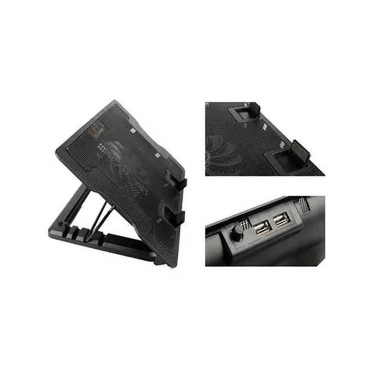 This is an elegant and handy design to cool off your laptop. It has a 14 cm super silent fan with big airflow. A blue LED light indicates the usage status of the pad. It comes with 2 USB ports for connecting more than one device through USB.
