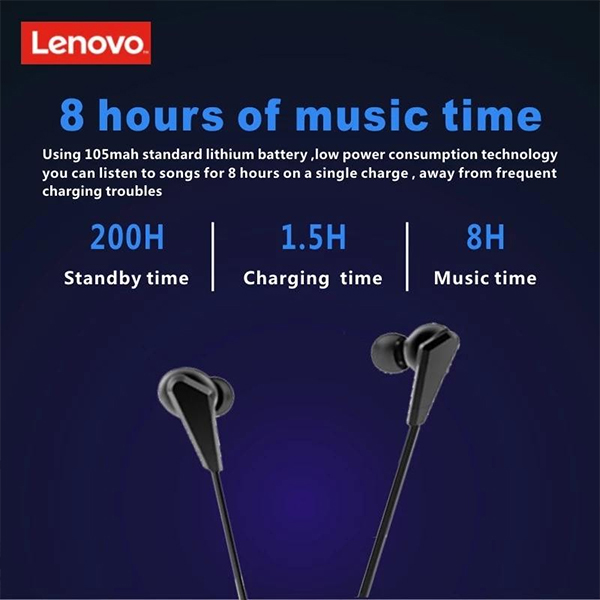 A top-notch premium quality Neckband Earphone with magnetic suction Earbuds from the premium brand, Lenovo, apt for calls and listening to music while working, driving, running and jogging Plug the great-sounding earphone to enjoy the noise- free music-listening experience with passive noise cancelling technology.
