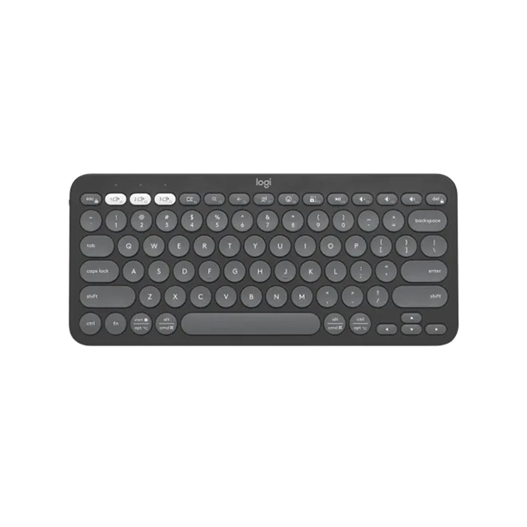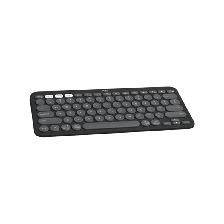 The Pebble Keys 2 K380s Quiet Keyboard comes with scooped round keys and a familiar, laptop-like typing experience for effortless, comfy typing.