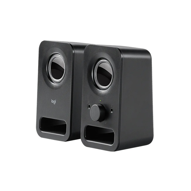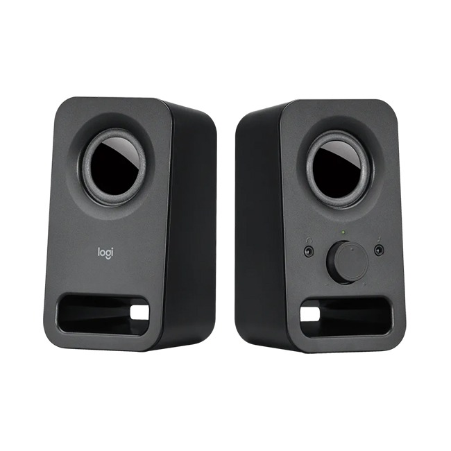 These stereo speakers provide clear sound and the compact design is great for small spaces. Easily access all controls, including the headphone jack, on the right speaker.