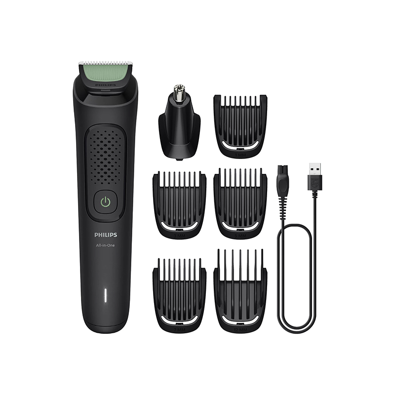 Designed for versatility and efficiency. With 7 attachments, self-sharpening steel blades for long-lasting precision and rounded tips for gentler trimming, the trimmer gives you the versatility to efficiently tackle all of your grooming needs.