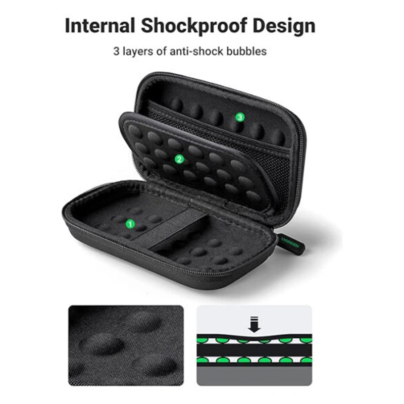 The UGREEN Hard Disk Case Small Size – LP128 is a compact and reliable storage solution designed to protect your external hard drives and other small electronic accessories. Featuring a waterproof EVA outer shell, anti-skid elastic straps, and a cushioned interior with a zipped mesh pocket, this case provides all-around protection and convenient organization.