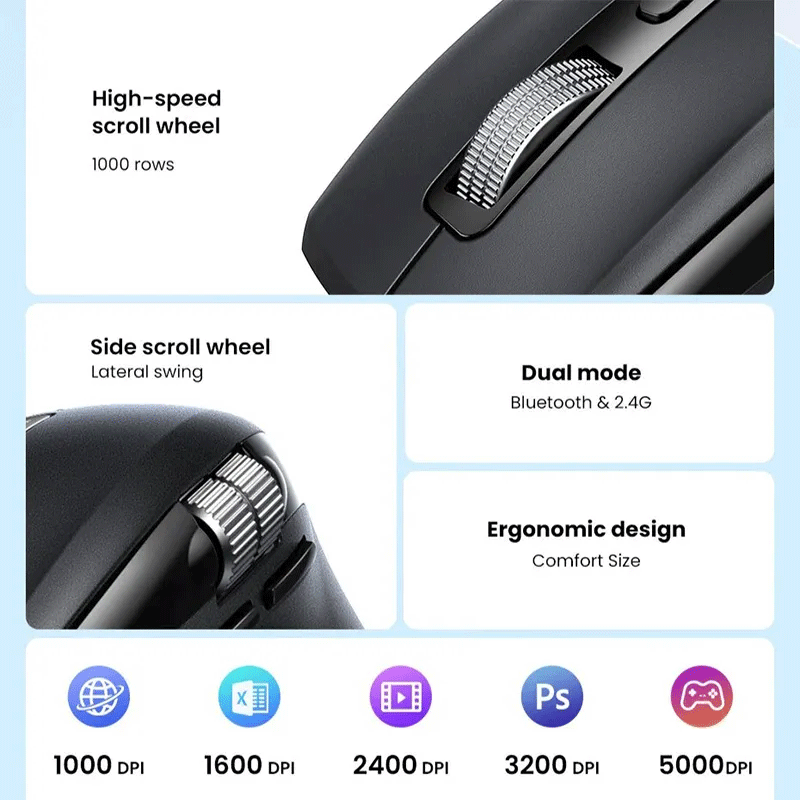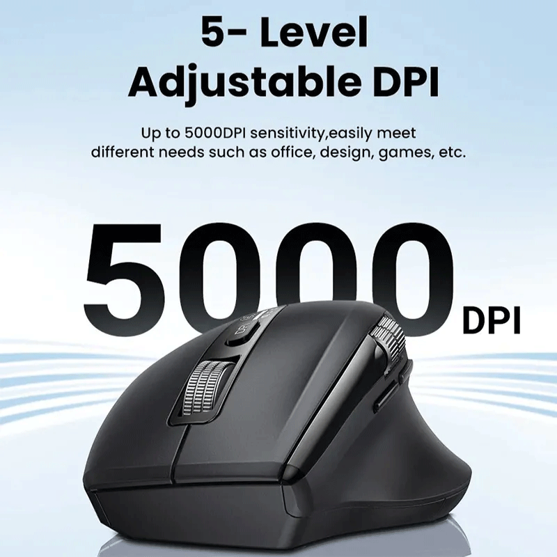 5 Adjustable DPI: UGREEN wireless mouse has 5 adjustable DPI levels (4000/2400/1600/1200/800), you can freely choose the cursor speed to meet various needs of gaming, office, home and more