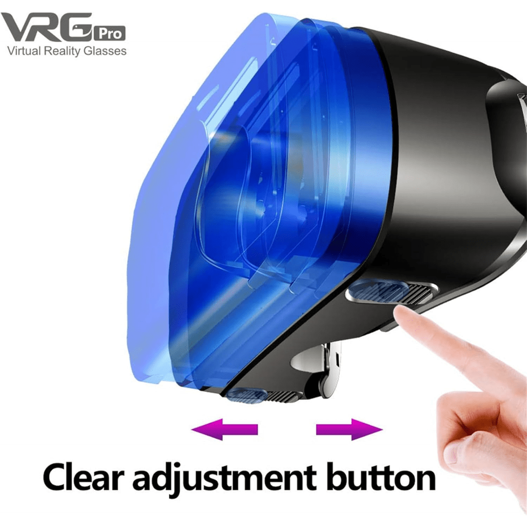 Phone-based VR headset for iOS/Android devices with 5–7″ screens. Adjustable lenses and IPD for clear viewing, usable by many myopic users (up to −8.0D) without glasses. Lightweight with soft padding, nose support, and adjustable straps for comfort. Sliding front cover helps keep dust out. Some versions include a handheld controller.